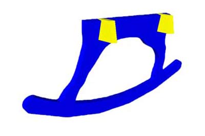 Glue the two formers (shown yellow) to the body (shown blue.) When the glue has set, glue the other side of the body in place. Make sure both sides face the same way.