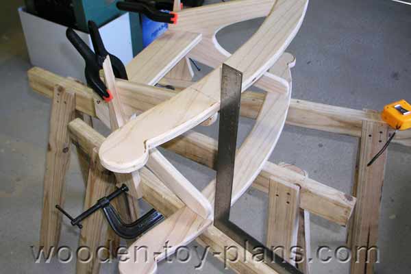 Photo showing how to use the builders square to line up the rockers to the legs.