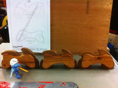 I needed to make a little THANK YOU for a mate so as I having some dressed cypress pine & spotted gum offcuts along with some 3/4's done merbau wheels, a motorbike it was PLUS I already had the templates for the sides and centre....